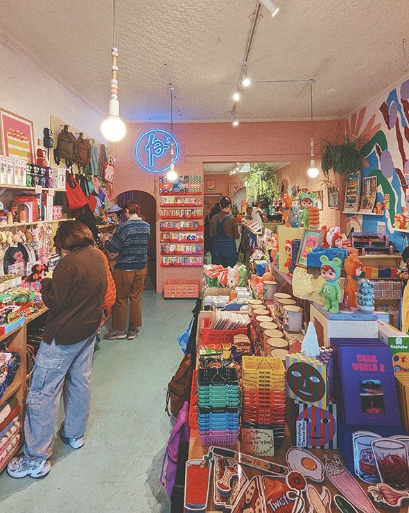 @pinkys_store_melbourne28 Gilbert Road, PrestonOn the border of Thornbury and Preston lies this pink-and-green-fronted, joy-filled gift store. Brimming with colourful and fun designs and homewares, everything in the store is curated by the owners, artist Emily Green and stylist Beckie Littler. You’ll find candles, ceramics, glassware, earrings (including by Emily Green), illustrated tea towels, toys, books, clothing and more. All from local labels, artists, designers and crafty types. Friendly touches, including a cubby nook for little shoppers, make it a welcoming destination for all ages. Pinky’s is the perfect spot for finding gifts for friends young and old, and you’ll find it hard not to leave the store with a gift for yourself too!