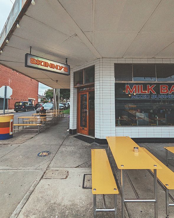@skinnys.eatery107 Gilbert Road, PrestonNamed after the owners’ two skinny whippets, Skinnys is a retro diner housed in an old 1930s milk bar. The space has retained much of the charm from its past life, from the vibrant colour palette to the retro furniture. The American-inspired menu is filled with simple and nostalgic classics like sandwiches and bagels, hot wings, rarebit, French toast, salads and fruit plates. Be sure to leave room for the very popular chicken-salt hash browns and rotating menu of square donuts. The drinks menu is just as playful – there’s coffee from Atypical, Nippy’s cold milk cartons plus local beer and natural wine to drink in or take home. Soak up the rays out on the street or sink into one of the booths inside.