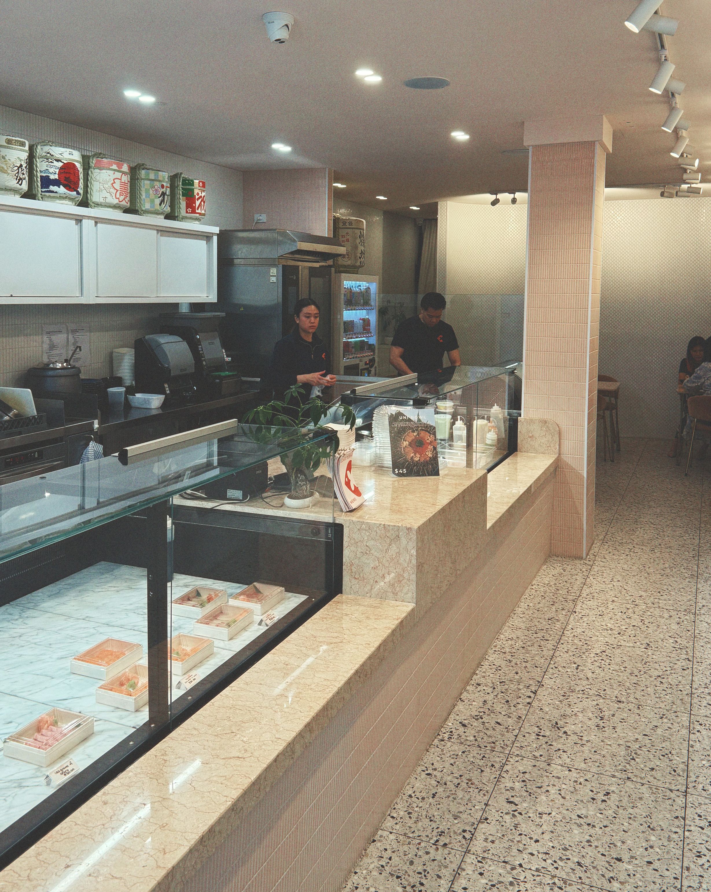 @elka.sushi2/7-9 Leeds Street, FootscrayDirectly across from sister store D&K Live Seafood, Elka Sushi serves premium made-to-order sushi and sashimi, using the freshest fish from the family business. Inside the pared-back sushi bar, a striking wave-patterned wall mimics fish scales, a large cabinet displays fresh seafood, and a Japanese vending machine dispenses cold drinks. The menu showcases a dry-ageing method – you'll see the fish hanging in the front window – that enhances texture and flavour. We had a delicious selection of beautifully presented nigiri and inari, delicately seasoned and elegantly garnished, with a house-made soy sauce that perfectly complemented the fish. There’s limited seating inside, but we recommend grabbing a table on the street to enjoy the people-watching while you dine. Elka Sushi is also licensed, and they have a great selection of sake available.