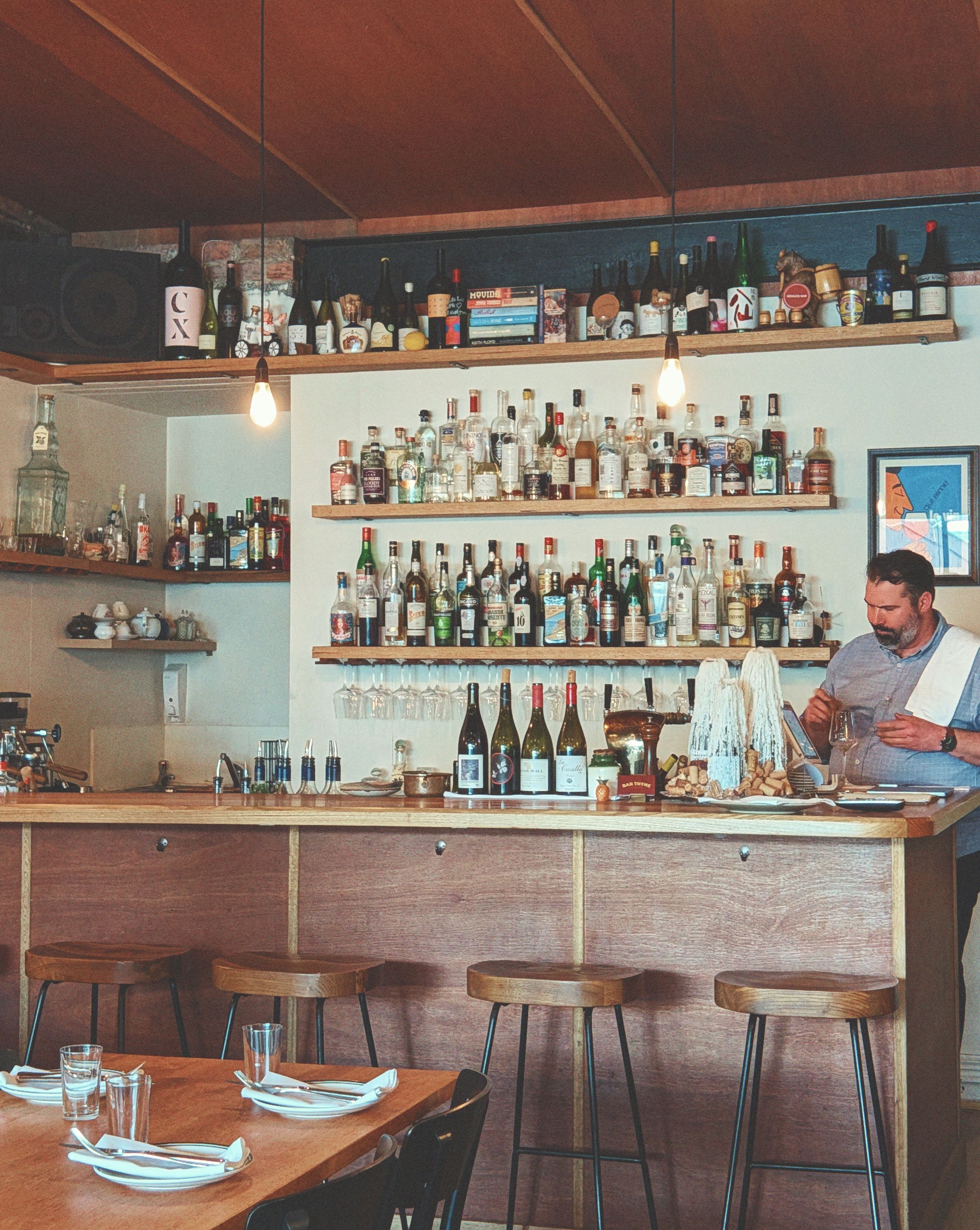 @barthyme227 Barkly Street, FootscrayBar Thyme is a welcoming neighbourhood wine bar that’s perfect for a glass of wine and snack out on the street, or to settle into the cosy interiors for a night of great food, drinks and hospitality. The seasonal menu changes weekly (sometimes daily), with dishes designed for sharing. The wine list features natural wines from small producers, thoughtfully curated to complement the food. There’s an excellent selection of classic and seasonal cocktails, plus alcohol-free options including house-made sodas and a very tasty house-made white vermouth. The space is warm and relaxed, with vintage London menus hanging on the walls, shelves lined with empty bottles, and knick-knacks collected from the owner’s travels. A mix of new and old vinyl provides the perfect soundtrack to your meal (Jazzmatazz was on rotation when we visited), and they're always open to requests.